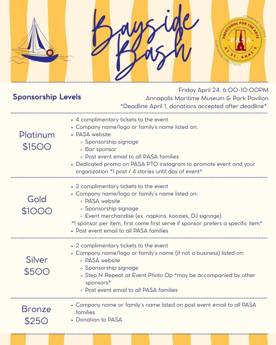 Your sponsorship of the event is an amazing opportunity to showcase your business or family name to the wider PASA community. We look forward to finding the perfect sponsorship package to meet your needs and support our school.